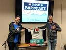 The Moutain Yak of SMK finally arrived before GP started, and slightly after some local journalists interviewed Sami (whose haircut was gonna be massively commented on social media, mérité) and Kyle with some Rainbow Road sign in the back. I'm not 100% sure who brought this wonderful item (Andrew?), which of course was as legal as Connor Wood watching adult movies with the regular porn fans at CDM 2012, but at first I thought that was a prize. I would have driven and played extremely seriously to win it. Unfortunately, that turned out not to be the case, and I think this one of the only few disappointments I had to face in Monroe (this, and not being able to troll Lafungo in real life all weekend long). I really, really need this artefact at my place, now that I know it actually exists (I remembered some photos, especially from the MKSC meeting, but the sign was too massive). The other piece of collection that was displayed just behind, during the same interview of Kyle, was the Fenner T-shirt. I've got another story coming.
