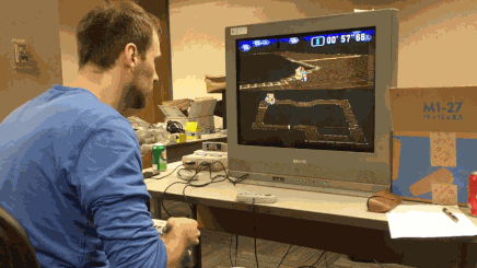 As Karel mentioned in his bilan, I'm not prepared to be consistent when it comes to Time Trial one-tries. I love to attack, to take maximal risks, when I'm facing a world class player like him, because that's my way to win (remember the 2013 and 2018 finals). Since Karel won the toss, he decided to play first to avoid the pressure of the wait (good choice), so I had to isolate in the main hall for something like five minutes. I came back without a single idea of what Karel had done, but I preferred to think he had driven well, without taking stupid risks, and made three great races. It's funny how fate decided Rainbow Road was gonna be part of the show as a final track – I already had in mind to attack as if I was looking for a PR there, even if my two first tracks (KB1 and CI2) were clean. I had what I thought to be a really good KB1 first (halfway between safe and aggressive), then I attacked on CI2 just the way I like to, adding that extra boost which is required for the 5-lap WR, and which is not that impossible to perform live. It almost worked at every lap but I managed to crash into a flower somewhere, so I really hoped Karel had hit a flower (or a fish on KB1, or perhaps the water) to make sure Rainbow Road was gonna be the deciding one.
